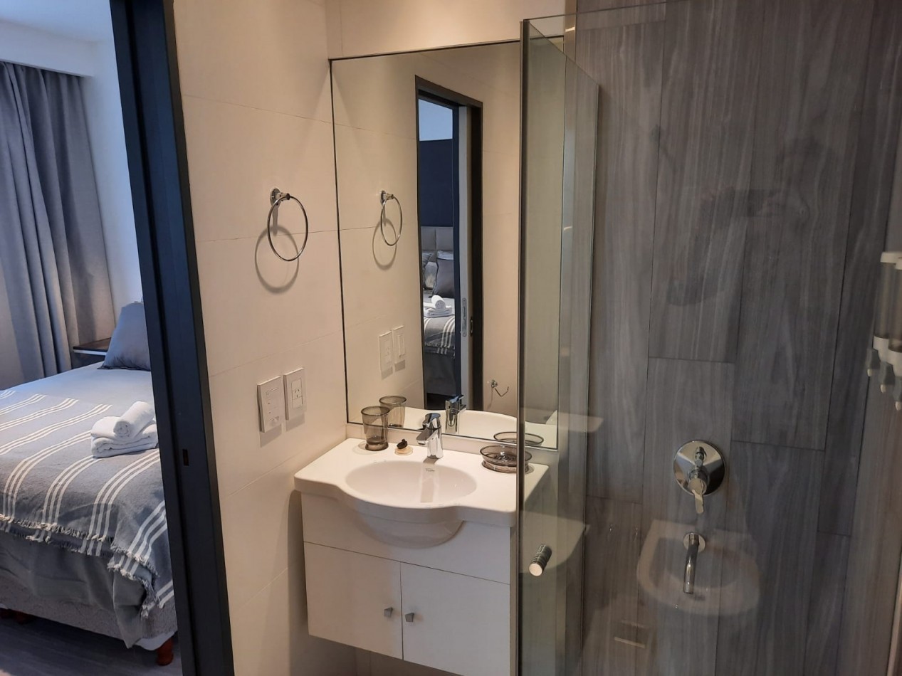 Almagro Abasto Departamento de 2 ambientes semipiso con baño en suite y toilette al contra frente super luminoso con balcón, Octavo Piso, vista abierta y super luminoso. A una cuadra de Av. Córdoba (Palermo). La Unidad cuenta con amplio estar comedor con ventanales al Este (sol de mañana) Amplio baño en suite con ducha y mampara de vidrio, balcón con piso atérmico que evita que se caliente con el sol, balcón francés en dormitorio e . Interiores de placard completos. Cocina equipada con conexión para lavarropas, Pisos de porcelanato y revestimientos de alta calidad y marcas reconocidas, carpinterías y ventanas importadas de Alemania marca "VEKA" de PVC con doble vidrio hermético aislante, preinstalación de aire acondicionado, balcones vidriados y barandas de aluminio. Detalles de tecnología y diseño en las unidades incluyendo enchufes USB en pared.