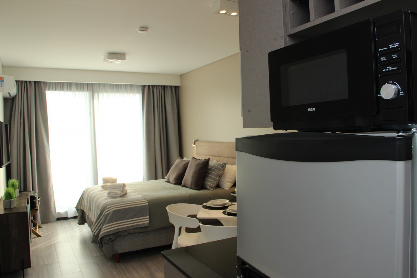 VENTA CON RENTA: Almagro Abasto Nuevo Departamento de 1 ambiente al frente super luminoso con balcón, moderno baño con mampara de vidrio y con ventana al exterior A una cuadra de Av. Códoba (Palermo). Edificio Le Coq, Moderno emprendimiento con amenities (sector parrilla, solarium y Laundry) de unidades flexibles y bajos costos de mantenimiento (Low Cost). Emprendimiento de categoría para un público joven. Unidades flexibles “Apto Profesional” y detalles de diseño y categoría. Ideales para renta temporaria y AirBnb. La Unidad cuenta con baño con amplia ducha con mampara de vidrio, balcón con piso atermico que evita que se caliente con el sol, Pisos de porcelanato y revestimientos de alta calidad y marcas reconocidas, carpinterías y ventanas importadas de Alemania marca "VEKA" de PVC con doble vidrio hermético aislante, preinstalación de aire acondicionado, balcones vidriados y barandas de aluminio. Detalles de tecnología y diseño en las unidades incluyendo enchufes USB en pared. Cada unidad cuenta con cerradura biométrica con tarjeta, código, huella digital , wifi y más; baños con espejos instalados, artefactos de luz en baño, cocina y ambientes incorporados, puertas interiores Foliadas (revestidas con diseño) para todos los departamentos, placares con puertas corredizas espejadas e interiores completos, griferías FV y artefactos sanitarios Ferrum. Ubicado entre Abasto y Palermo, una de las mejores zonas para estudiantes de toda la ciudad y para el hospedaje de turistas estando muy próximo al centro comercial "Abasto", a la Universidad de Palermo, a la Universidad Tecnológica Nacional (UTN) y a varias de las facultades de la Universidad de Buenos Aires situándose a solo una cuadra del límite con el barrio de Palermo entre las avenidas Corrientes y Córdoba. Muy accesible con medios de transporte públicos y ciclovías. Nota importante: Toda la información y medidas provistas son aproximadas y deberán ratificarse con la documentación pertinente y no compromete contractualmente a nuestra empresa. Los gastos (expensas, abl) expresados refieren a la última información recabada oportunamente y a la confección del aviso y no necesariamente reflejan la importes actuales los cuales deberán confirmarse con el personal de nuestra empresa. Las fotos correspondientes a esta publicación son solamente a titulo informativo para entender dimensiones, distribución, equipamiento y características y pueden corresponder algunas o todas de ellas a otra/s unidad/es de similares dimensiones, distribución, equipamiento y características en otros pisos superior/es o inferiores. Ley 5150 - Accesible para personas con movilidad reducida