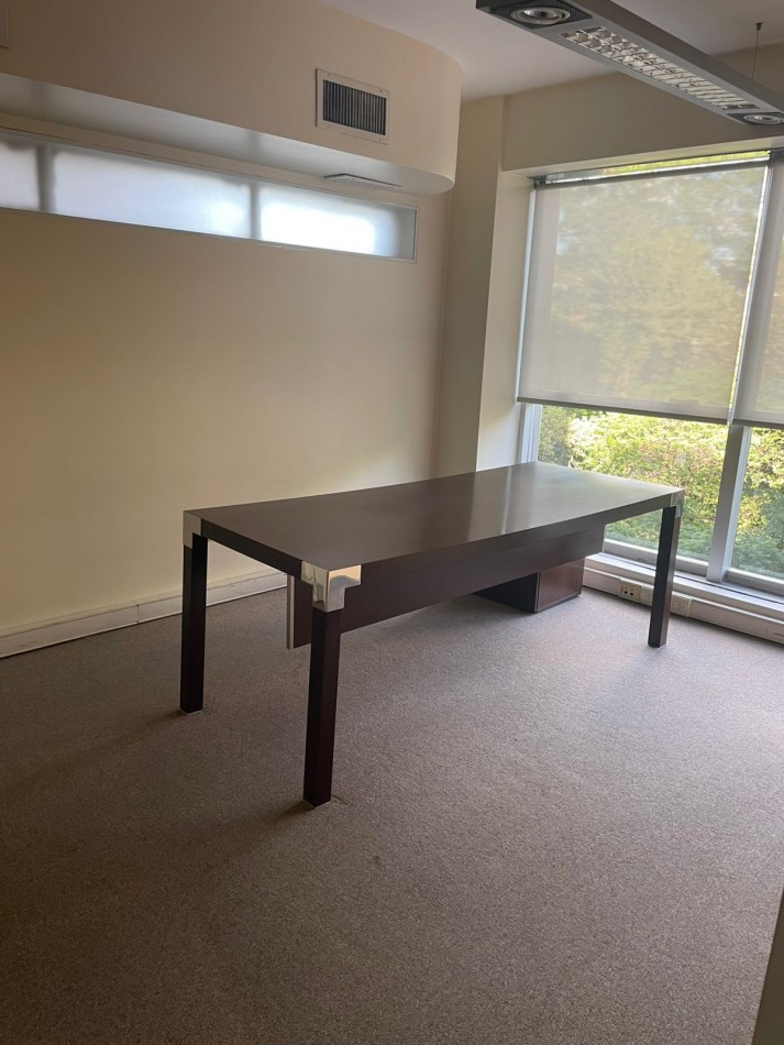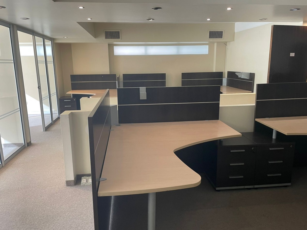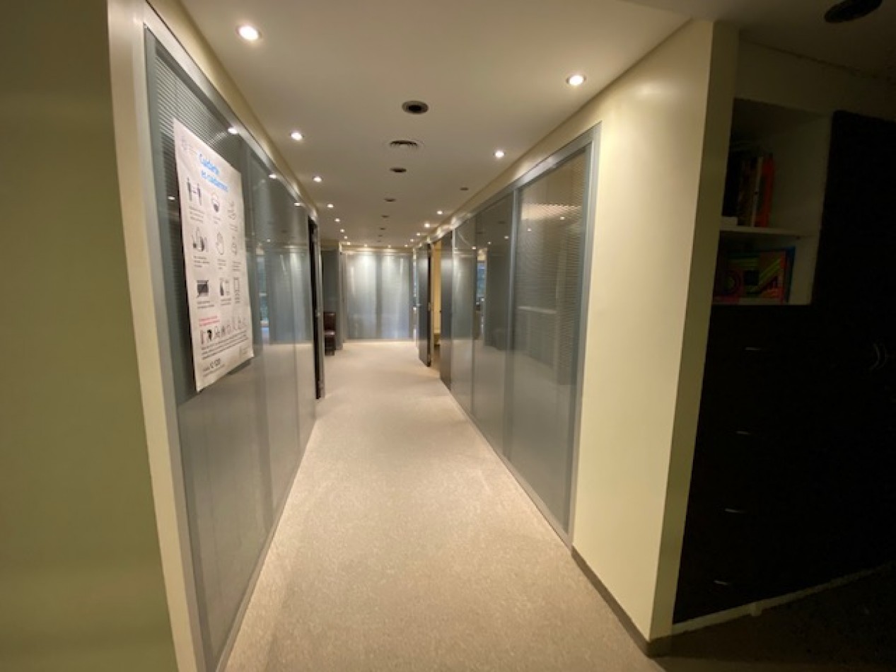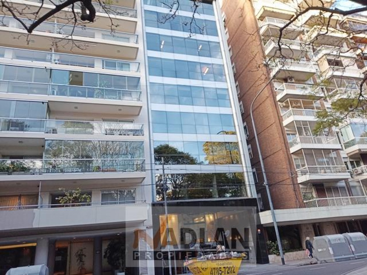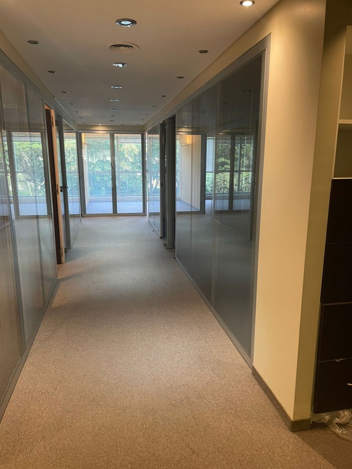 Belgrano – Alquiler Oficinas - Exclusiva y moderna planta de 225 m2 en sexto piso con 2 cocheras fijas super luminoso frente al parque de al embajada de Alemania en exclusivo edificio de oficinas con frente de courtain-wall, seguridad 24 horas, generador eléctrico y 2 ascensores automáticos. Espectacular ubicación en exclusiva zona del Shopping Solar de la Abadía – La imprenta sobre Avenida Luis María Campos entre Olleros y Gorostiaga. El piso se compone de dos semi pisos de oficinas, una al frente de 115 m2 y la otra al contra frente de 110 m2. ambas oficinas enfrentadas entre un hall / Palier que permite generar un amplio espacio de Recepción y espera. Cada oficina tiene su propio office, 2 baterías de baños Damas/Caballeros, su propio archivo y depósito. Aire acondicionado central Frio/Calor, pisos alfombrados en muy buen estado, cableado por zócalo ductos. Ambas oficinas están equipadas con múltiples divisiones en vidrio. Al frente 6 espacios (despachos y Sala de reunión), Al contra frente: sala de espera y Gran area de trabajo con puestos de trabajo armados con mobiliario, escritorios y sillas y 4 despachos / compartimientos. El precio del alquiler es más IVA. Muy accesible con todos los medios de transporte Público. Ubicado sobre Luis Maria Campo en tre las avenidas Libertador Cabildo Lacroze y próximo al centro comercial solar de la Abadí.