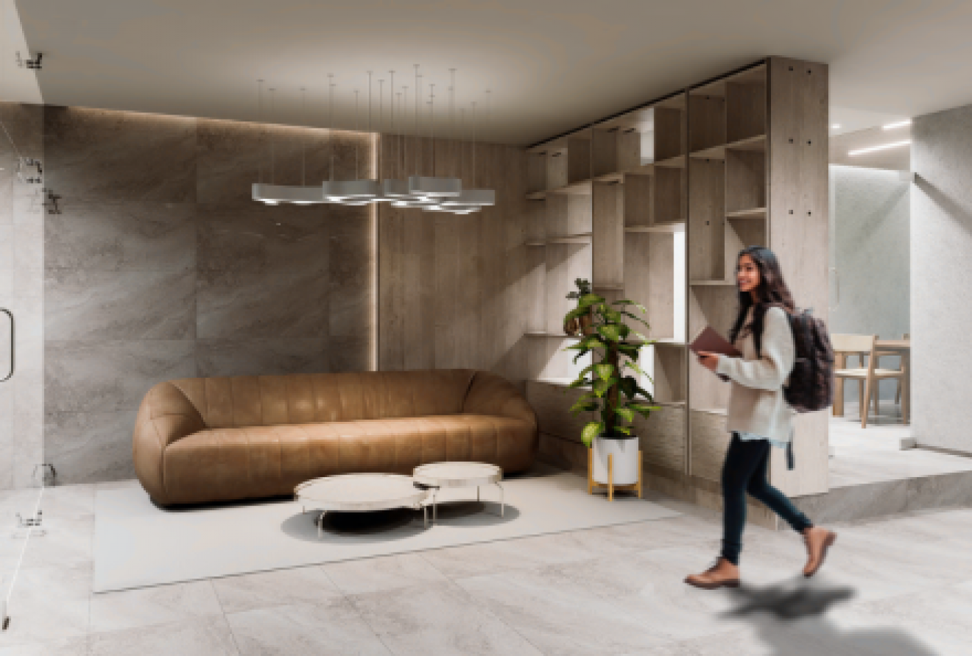 Moderno edificio con Hall de entrada y espacio de espera,