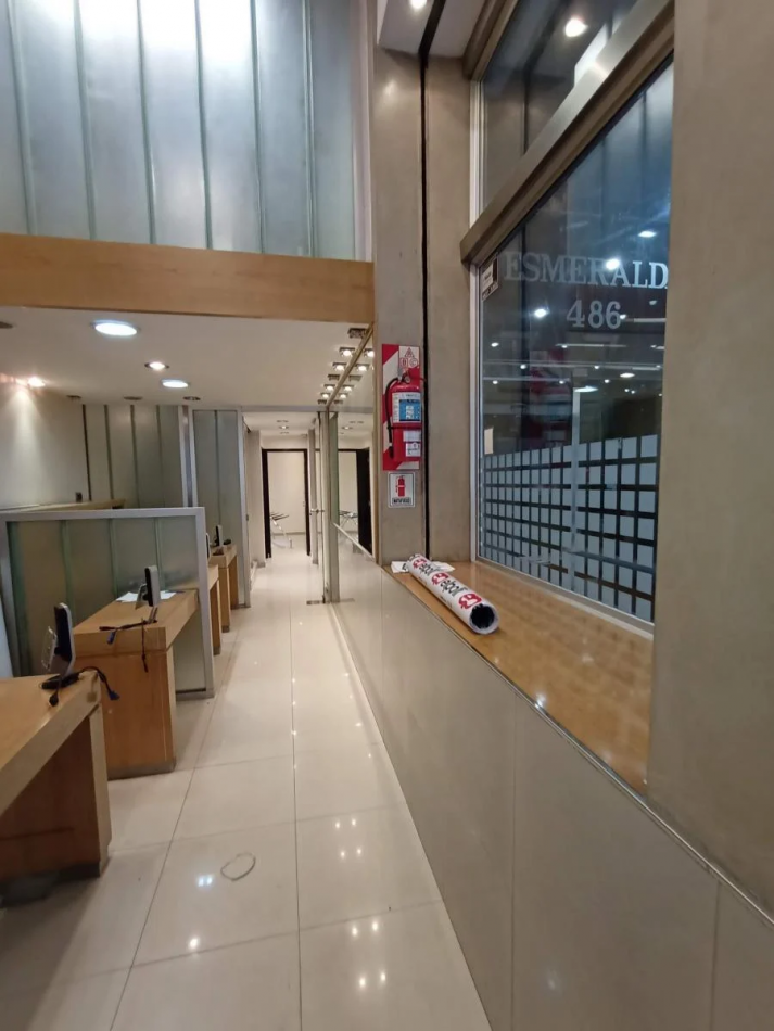 Venta con Renta, Microcentro, Esmeralda y Lavalle excelente local con doble vidriera a Esmeralda y a Lavalle justo en la boca del subte Linea C. Alto transito de publico y turismo. Impecable estado con instalaciones eléctricas de primera, Airea acondicionado (4 equipos), salon de ventas en doble altura con 5 puestos de trabajo, kitchenette, 2 baños, sala de reuniones y 2 oficinas. Cableado de red, artefactos de iluminación, persianas eléctricas, escritorios y puestos de trabajo. Sup total 85 m2 aprox. Ideal salón de belleza, agencia de viajes, cambio, inmobiliaria, etc. Todos los medios de transporte, a solo 20 metros de Lavalle Peatonal y Av. Corrientes, frente al teatro Maipo, y próximo al obelisco. Instalaciones y mobiliario de lujo.Ley 5150 - Accesible para personas con movilidad reducida