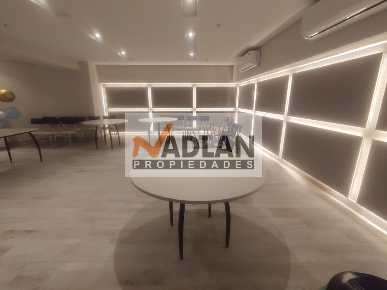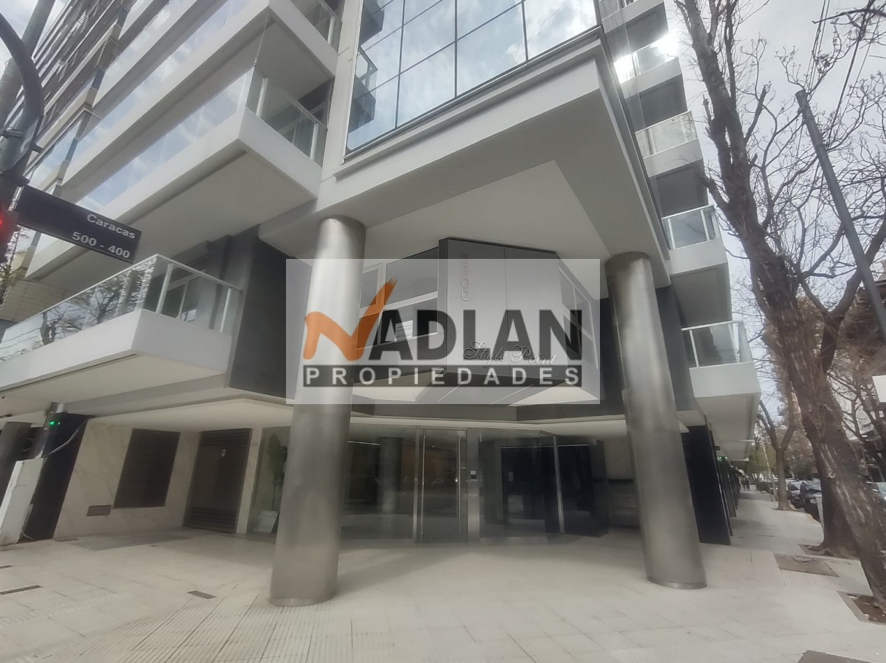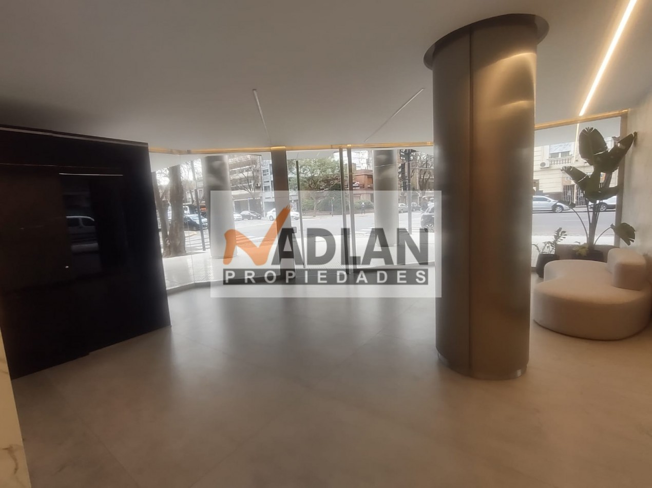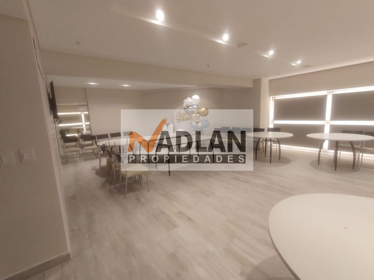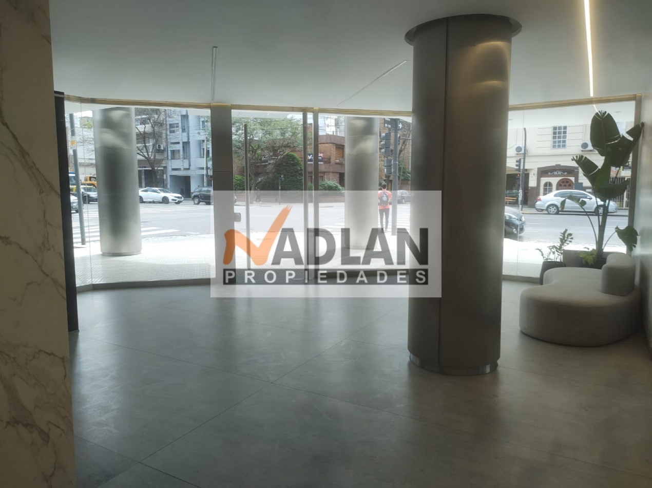 El edificio ofrece una cochera fija cubierta, incluida en el precio, y cuenta con tres ascensores, uno de ellos camillero. El hall de entrada es elegante y cuenta con detalles de alta categoría, reflejando el estilo del edificio. Entre sus amenities, dispone de un Salón de Usos Múltiples (SUM) con cocina completa, vigilancia presencial las 24 horas, una amplia terraza en el piso 13 con solárium, duchas, pileta y reposeras. También posee un gimnasio completamente equipado en la planta baja y un generador eléctrico para garantizar el funcionamiento de servicios básicos en caso de cortes de luz.