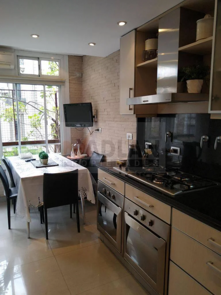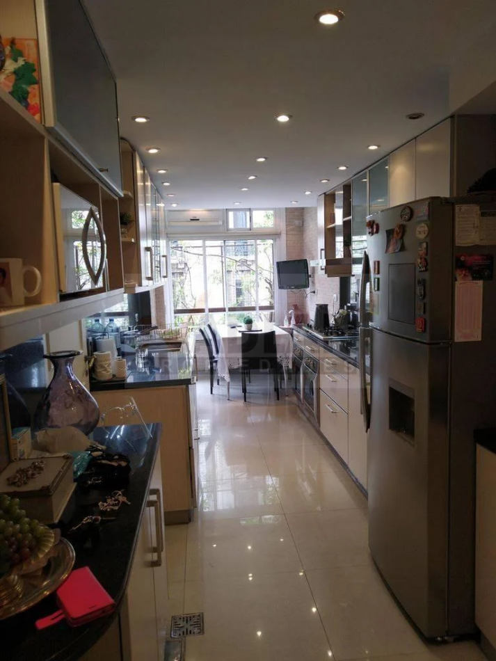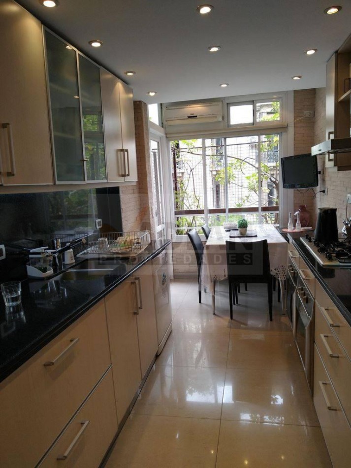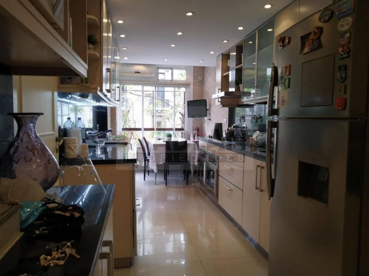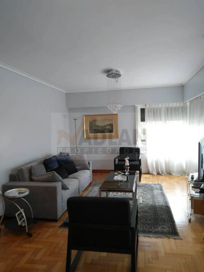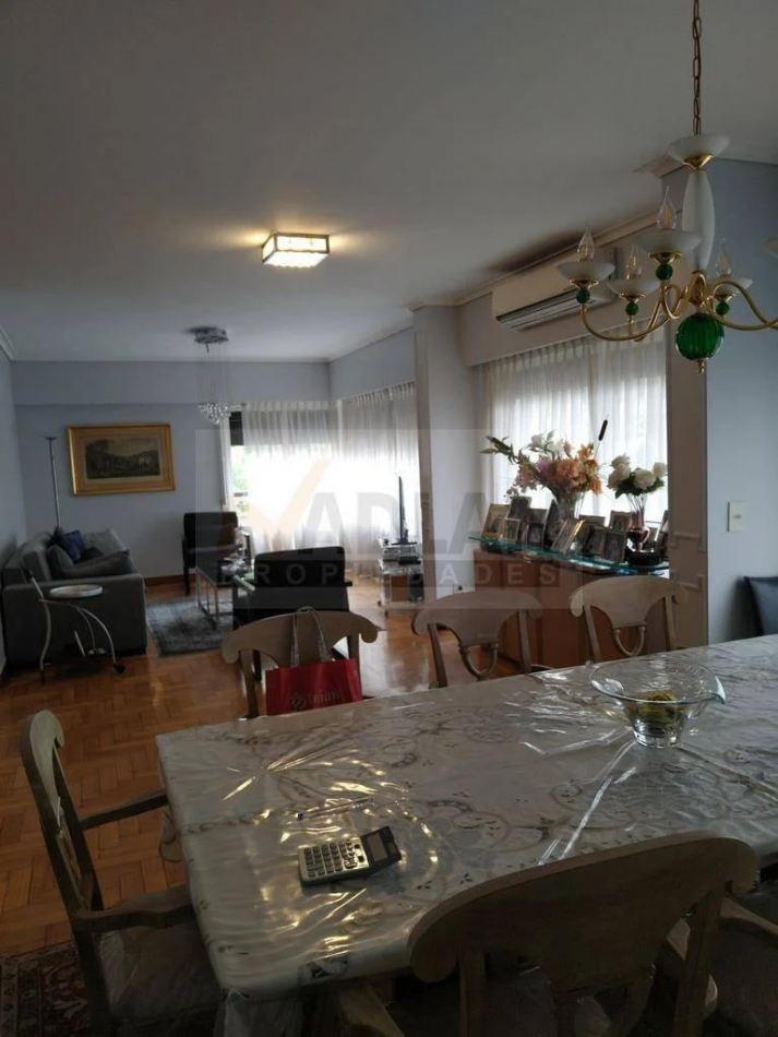 Recoleta venta 4 ambientes con dependencia. Piso entero de 148 m2 en esquina Av. Santa Fe y Uriburu. Edificio Torre con 2 ascensores, Palier privado, entrada de servicio, doble circulación. Amplio Estar-comedor con salida a balcón corrido sobre Avenida Santa Fe y pisos de madera. Toilette y placard de recepción. 3 dormitorios, el principal con baño en suite e hidromasaje. Dos dormitorios con placard y segundo baño completo. Amplia cocina con ventilación al frente, Cocina con doble mesada, totalmente renovada y equipada con dos hornos Ariston y gran anafe a gas. Dos piletas y muebles bajo y sobre mesada. Comedor diario a la calle. Dependencia de servicio con su baño, Lavadero y patio Luminoso. Muy buen estado general, aire acondicionado en todos los ambientes, agua caliente y losa radiante individual por caldera. Incluye baulera. Excelente ubicación sobre Avenida Santa Fe y Uriburu entre las Avenidas Callao y Pueyrredón. Nota importante: Toda la información y medidas provistas son aproximadas y deberán ratificarse con la documentación pertinente y no compromete contractualmente a nuestra empresa. Los gastos (expensas, abl) expresados refieren a la última información recabada oportunamente y a la confección del aviso y no necesariamente reflejan la importes actuales los cuales deberán confirmarse con el personal de nuestra empresa. Fotografías e información no vinculantes ni contractuales. Las fotos correspondientes a esta publicación son solamente a título informativo para entender dimensiones, distribución, equipamiento y características